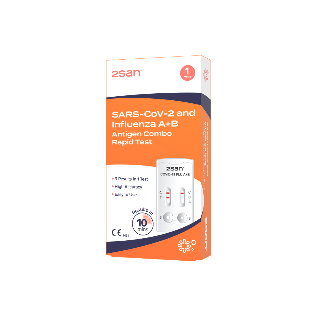 The 2SAN COVID & FLU A/B Dual Test is a professional-grade rapid diagnostic test designed for the qualitative detection of COVID-19, Influenza A, and Influenza B from a single specimen. It enables quick differentiation between respiratory infections with overlapping clinical symptoms, supporting timely decision-making in clinical, workplace, and home-testing environments.